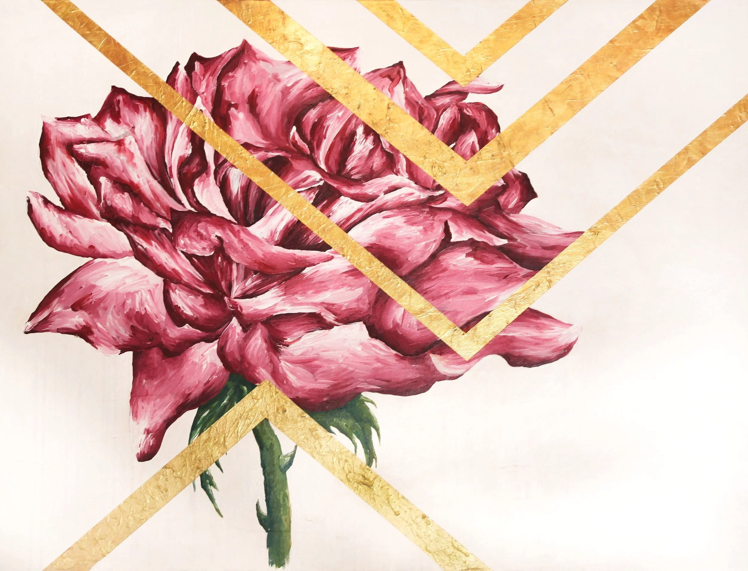 I love art in all forms, but I find joy in my personal expression of art using the medium of acrylics to represent some of the small beauties of nature. My process often starts with the seduction of a blank canvas. Though my canvas starts with nothing I can often already hear it tell me a story of what it needs to be. It whispers of orientation, negative space, color, and of course what subject will unfold its pedals to my brush. From there the search for reference photos' starts. I am most often looking for flowers but sometimes other things from nature call to me, such as a tree, fruit, or the movement of strata in stone. Once the perfect reference, or combo, of reference images have been found I am finally able to get messy. The actual process of painting is my favorite. I love finding the right colors, developing the form, and overcoming that frustrating part in the middle where I do not know if I will be able to get the painting to work out. Eventually my image comes together and I just have the finishing touches. This is often adding in a touch of metallic and geometric line work. For me this strikes the perfect balance of contrast and beauty between nature and the human made. After all of this I finally get to soak it all in, enjoy what I have created, and get excited for the next work.